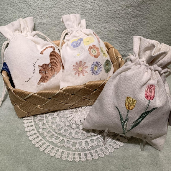 刺繍雑貨専門のブランドから可愛い巾着袋が入荷しました。