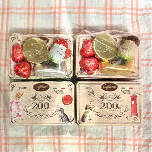 ・ブルーミニ缶・・・カファレルイラストの女の子と猫の手紙のやり取りが可愛い缶。定番人気のジャンドゥーヤビター等をアソート。