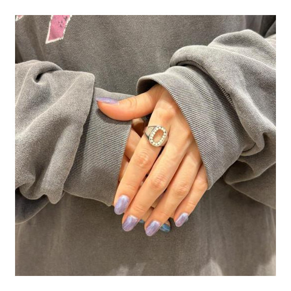 回りにパールが付いている大人可愛いリング。