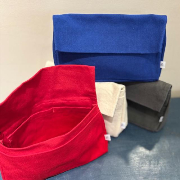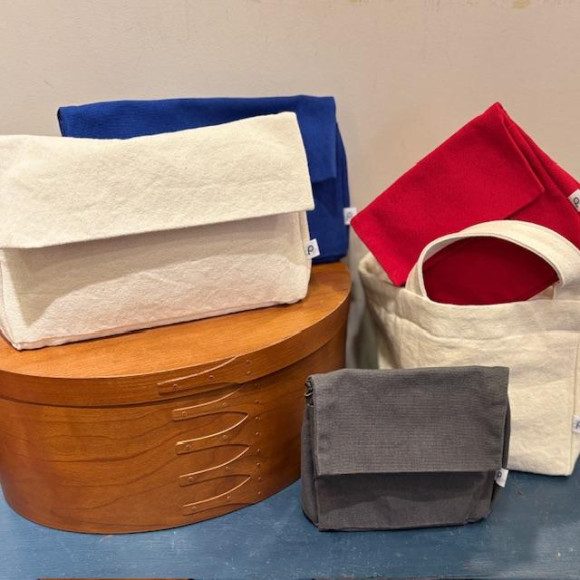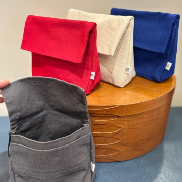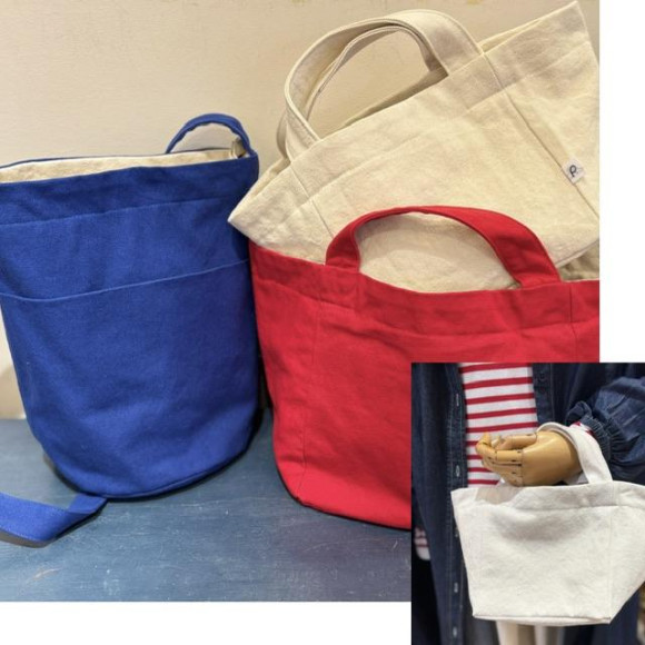 人気のPOUTOのキャンバス地バッグ。新色ブルー、新型を加えて再入荷しております。