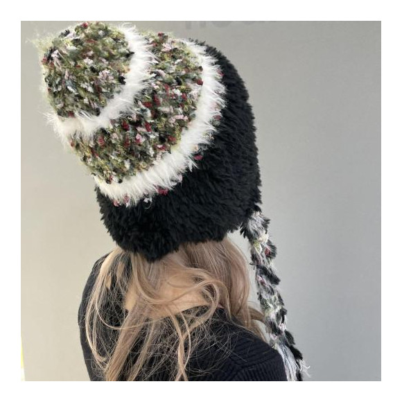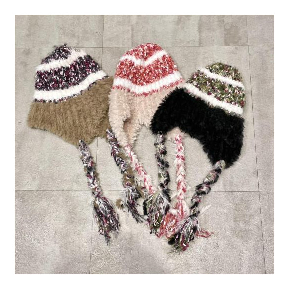 韓国風デザインの紐付きニット帽。