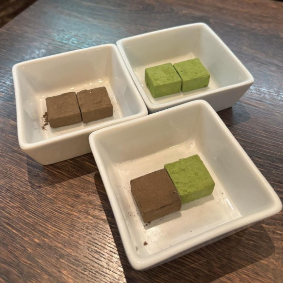 通常4種類から選ぶスイーツ、今なら生チョコレートを選ぶこともできます。生チョコレートやミニパフェは溶けやすいので、食後にご提供することもできます。