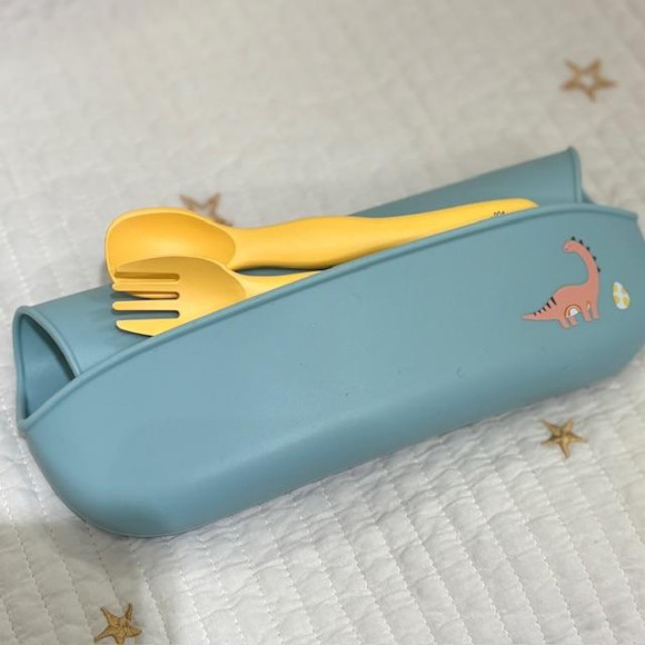 カトラリーを入れてコンパクトに収納可能です。お子様に合わせて首回りのサイズ調整も可能なのもうれしいですね。