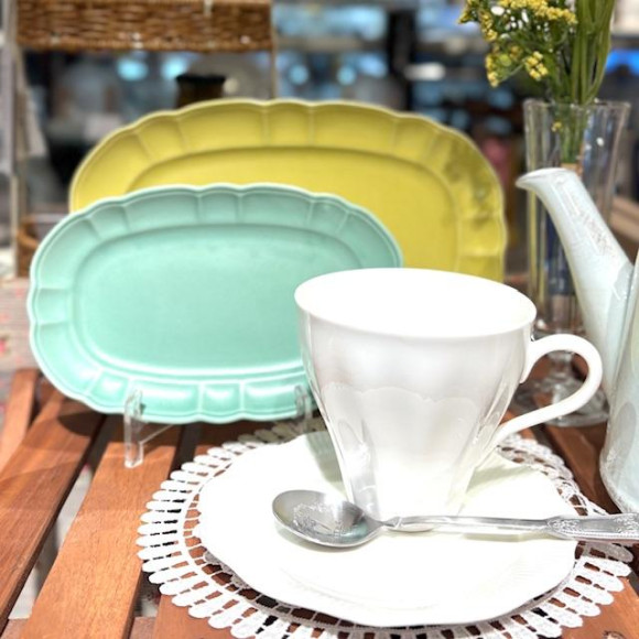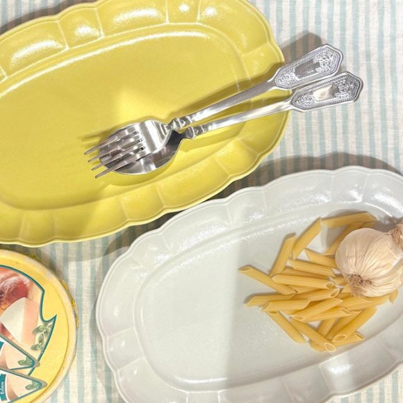 24㎝は食事に使用できるようにイメージして、イエローとアイボリー。カレーやハンバーグなどにぴったりです。