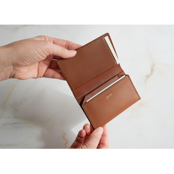 名刺入れは風琴マチを採用し、大きく開いて名刺が取り出しやすい設計。