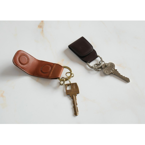マグネット付きキーホルダーはバッグの内ポケットに鍵を入れ、マグネットで挟むことで迷子防止になります。帰宅後に玄関に付けておくことも可能で、革の手触りを楽しめるシンプルな小物です。