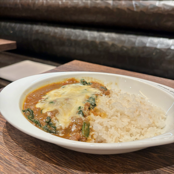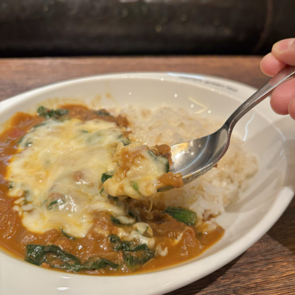 トッピングのとろけるチーズが、カレーの味わいにまろやかさとコクを演出します。