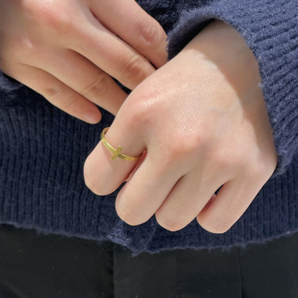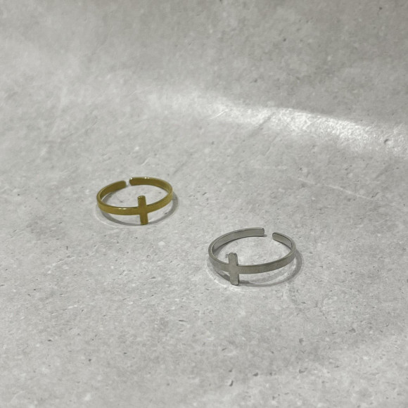 シンプルな十字架がワンポイントのリング。