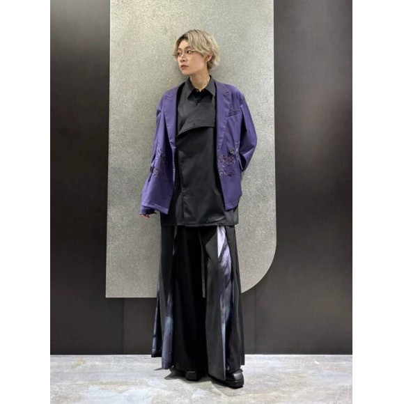 袴のようなシルエットにウールライクな生地で、程よい光沢のある表面感が上品な印象に。