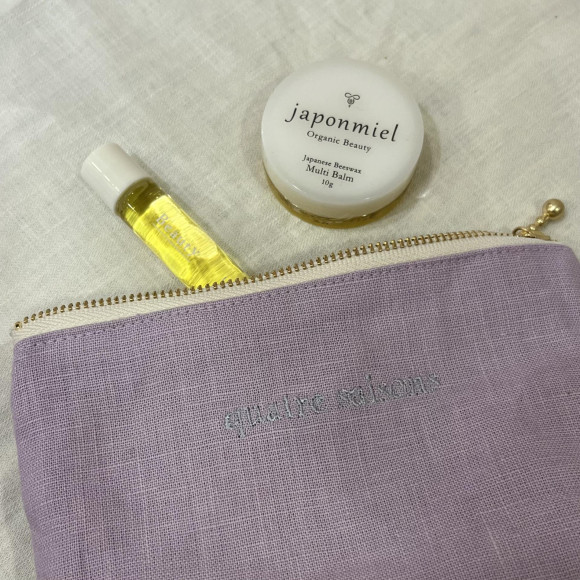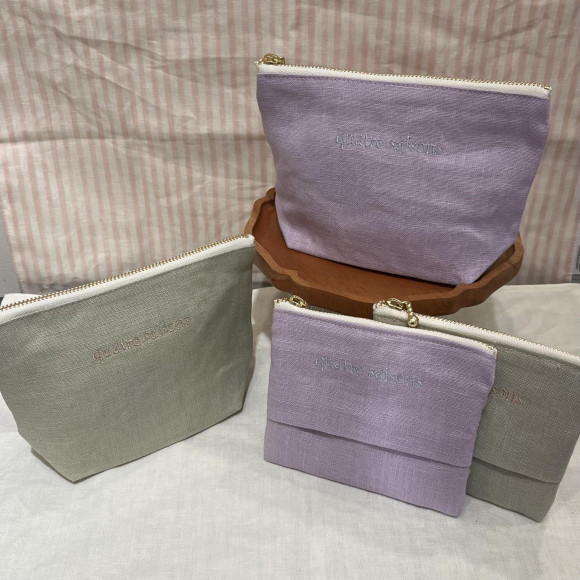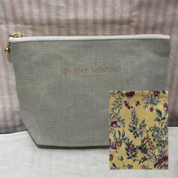麻の生地を使用して作ったQS刺繍入りの別注ポーチシリーズのご紹介です。