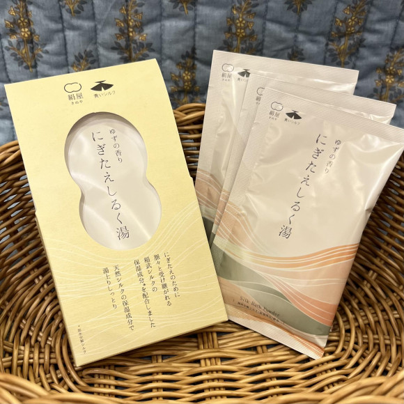 そんな歴史のある稲武の国産シルクを贅沢に配合した入浴剤です。