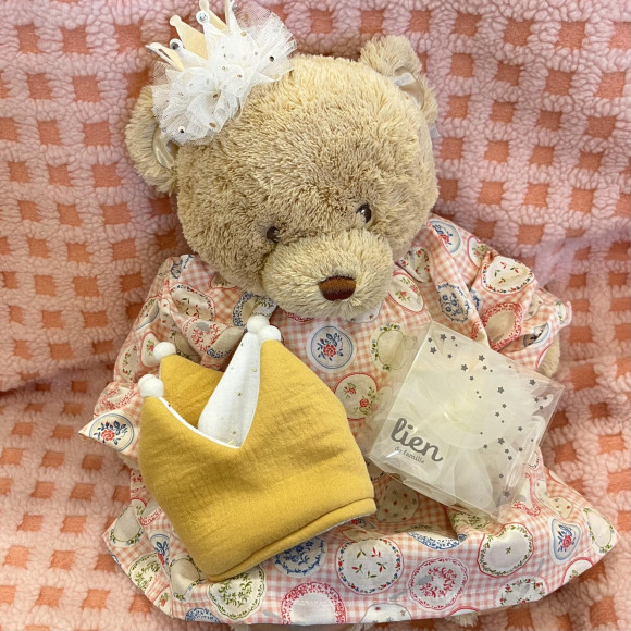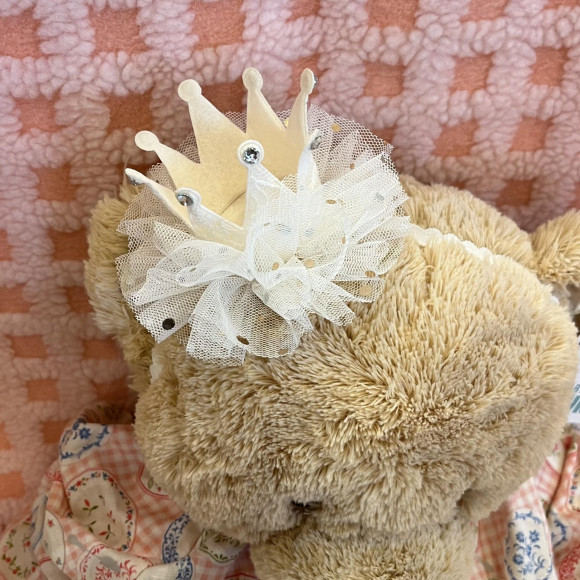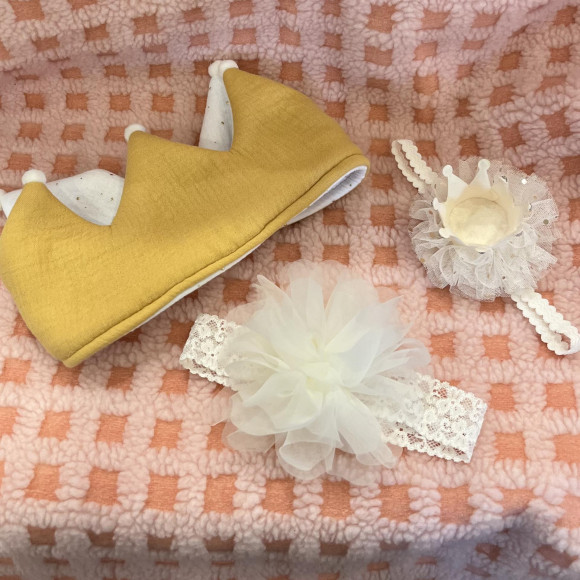 王冠のアクセサリーはリボンで結ぶタイプなので成長に合わせてサイズ調整が可能です。
