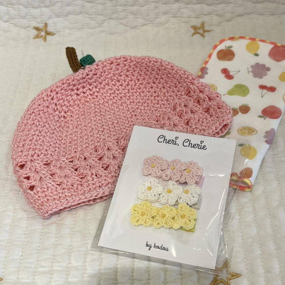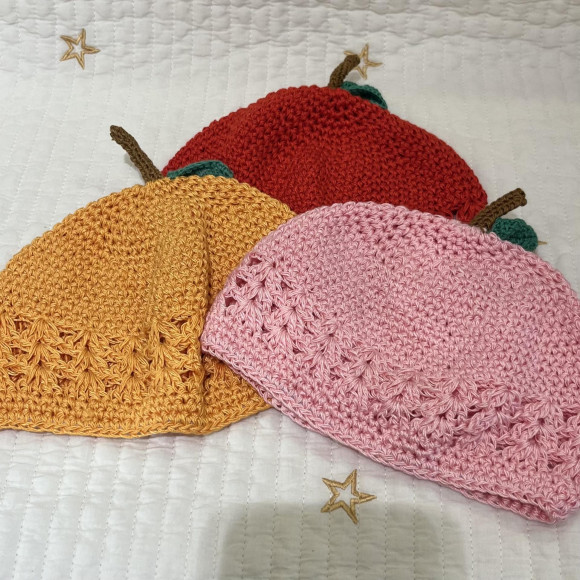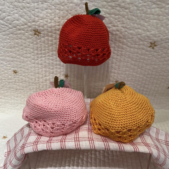 街ですれ違う人にも声を掛けられそうな、かわいいフルーツ帽子。