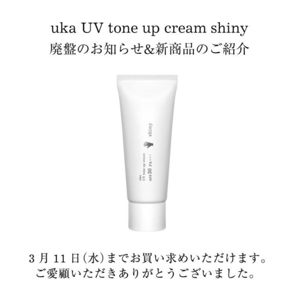 uka UV tone up cream shiny 廃盤のお知らせ&新商品のご紹介