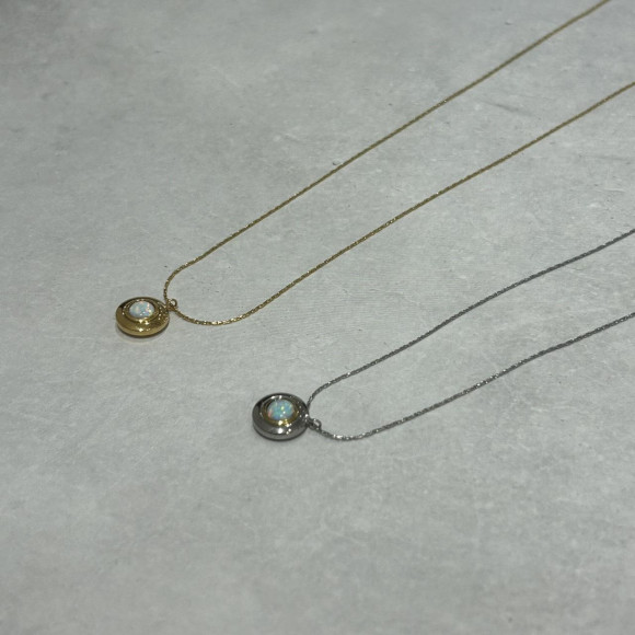 本日はオパールのようなストーンがポイントのネックレスをご紹介致します。