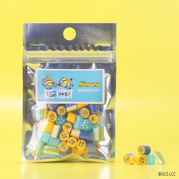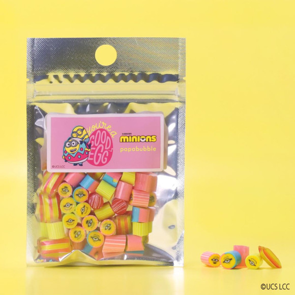 ミニオンのハチャメチャで楽しいイメージを、色合いだけでなく味わいでも表現。フレーバーはミックスジュースをイメージし、ポップなデザインに仕上げました。お子さまはもちろん、見た目で喜ばれるお菓子を探している方にもおすすめです。