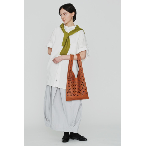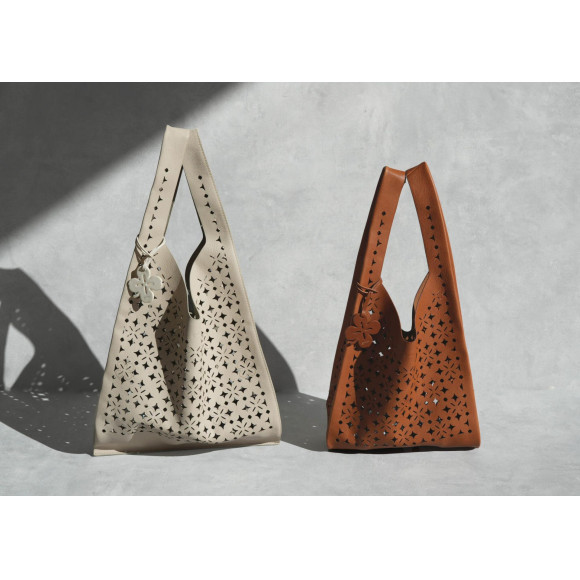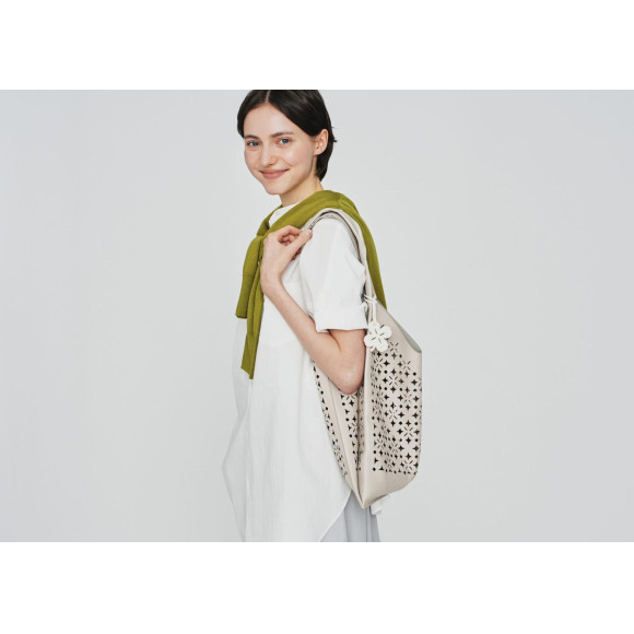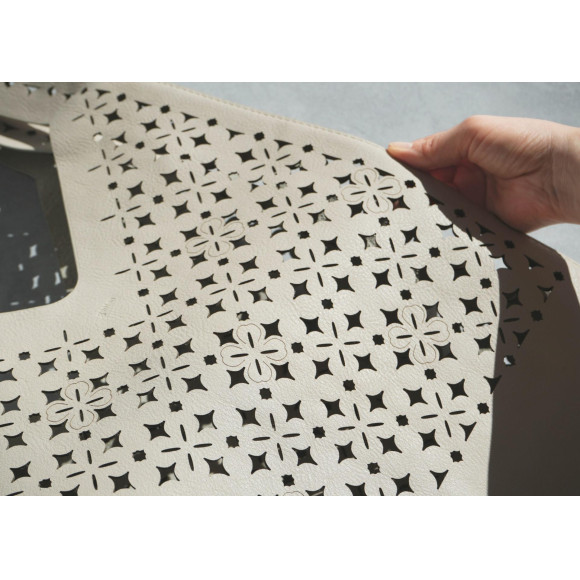 春の光をやわらかく通し、涼やかな影を落とす、繊細なカットワークのトートバッグ。