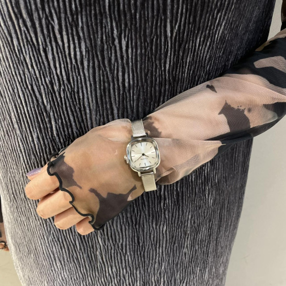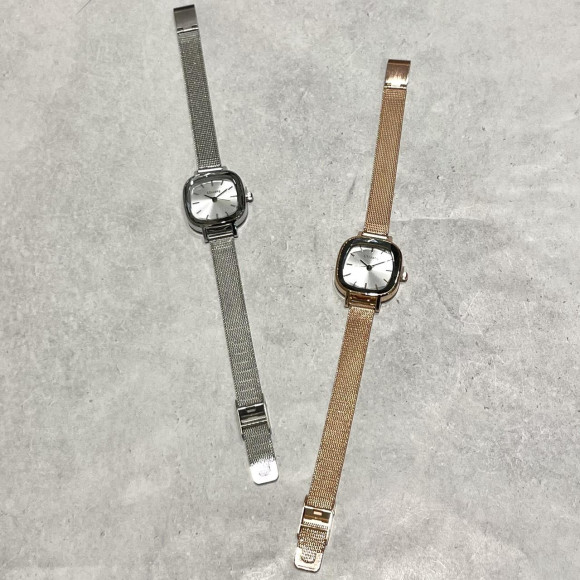 ころんとしたスクエア型のフレームが可愛らしい腕時計。