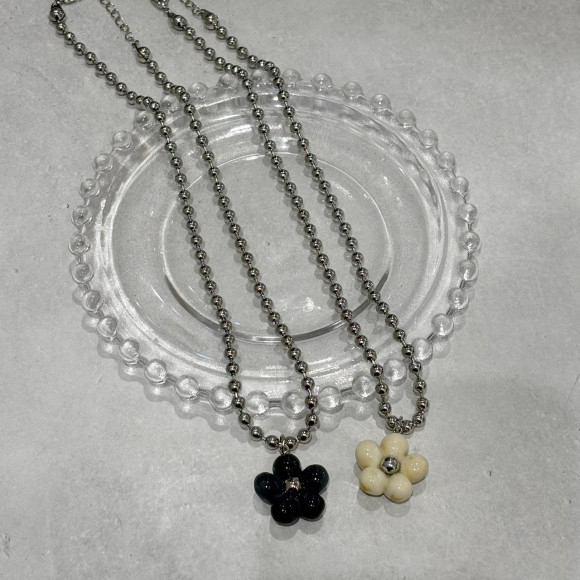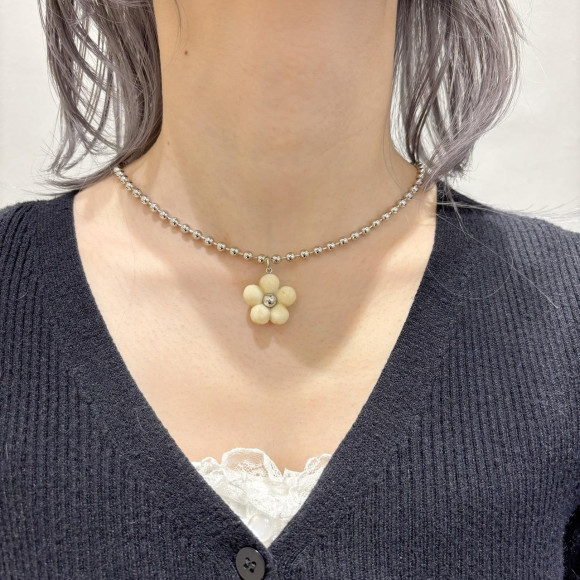 華奢なボールチェーンにフラワーモチーフが映えるネックレス。