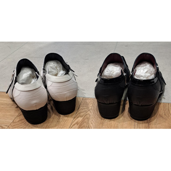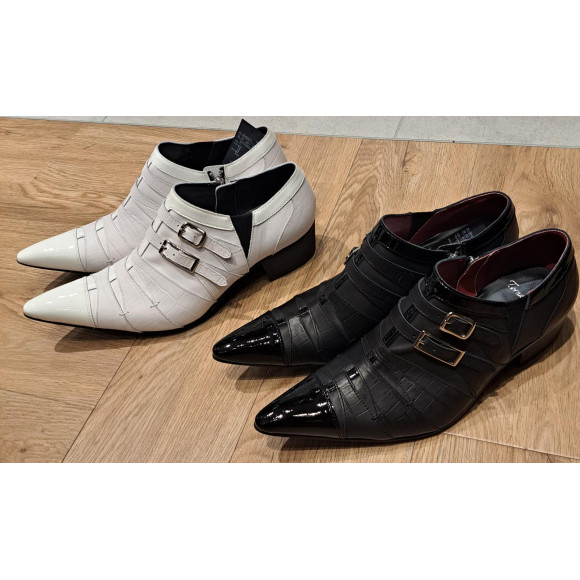 ストラップベルトで幅を調整可能。キレイな形が細身のパンツとの相性抜群、ロックに決まる一足です。