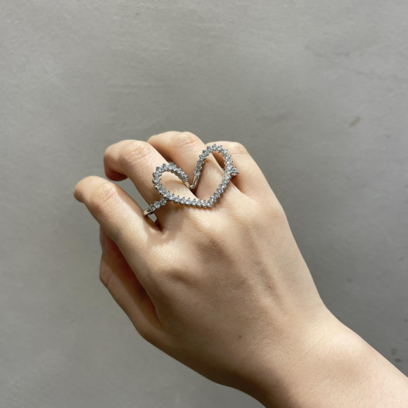 ハート ビジュー ダブルフィンガーリング