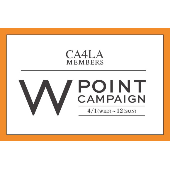 CA4LA MEMBERS会員の皆様への感謝の気持ちを込めまして、Wポイントキャンペーンを開催いたします。キャンペーン期間中に対象店舗でお買い物いただくと、ポイントが通常の2倍に!新規ご入会の方もキャンペーンの対象となりますので、この機会にぜひご入会ください。