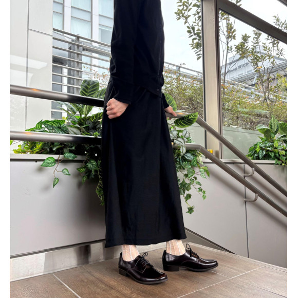 全体的にすっきりとしつつも、つま先にかけて丸みのあるシルエットになっているので、パンツからスカートまで幅広いスタイルに合わせていただけます。