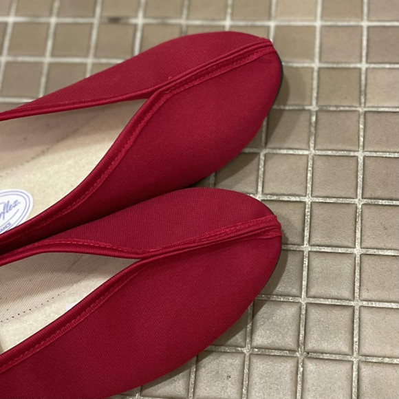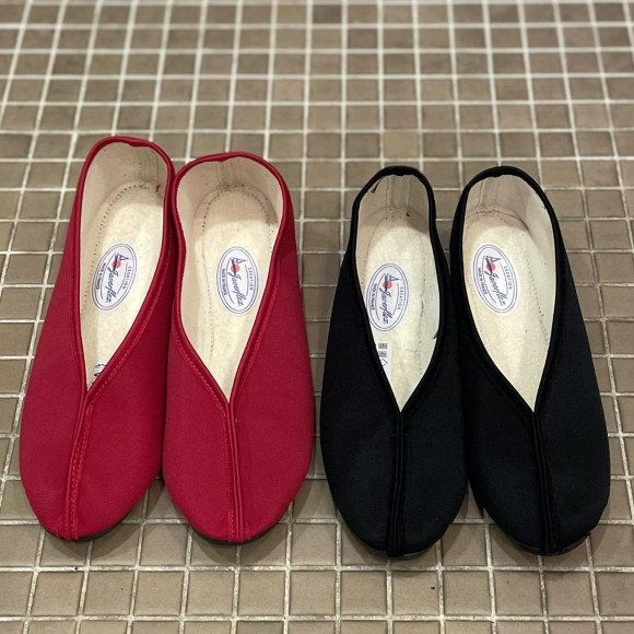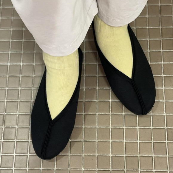 美しいV字のフラットシューズ。足元をすっきりきれいに見せてくれるデザインです。