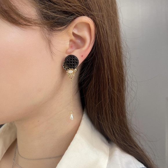 定番ハートモチーフでも、パールのような艶のあるパーツで可愛くなりすぎない印象に*