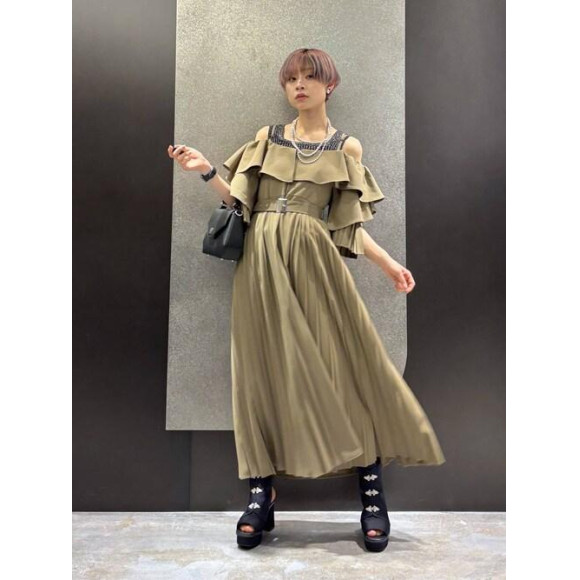 プリーツが女性らしく大人っぽい印象のシルエットに仕上げてくれます!