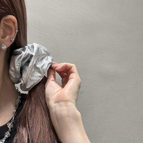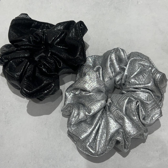 使い勝手のいいブラックとシルバーのレザーシュシュ。