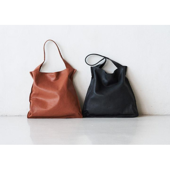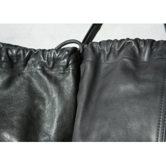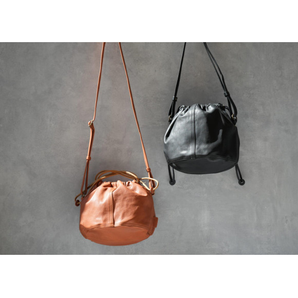 良質なカーフ(生後6か月以内の仔牛の革)でお作りしている「サステナブル巾着」。ワンハンドルトートと肩紐付きの2WAY仕様が再入荷しました。
