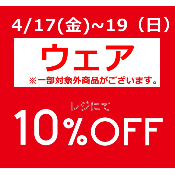 【ウェアお買い上げで、レジにて10%OFFいたします】