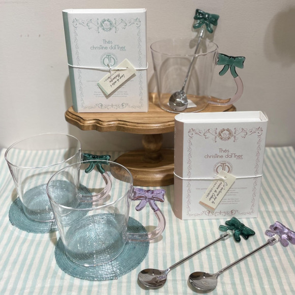 キュートなリボンモチーフのガラスマグが入荷しました♪