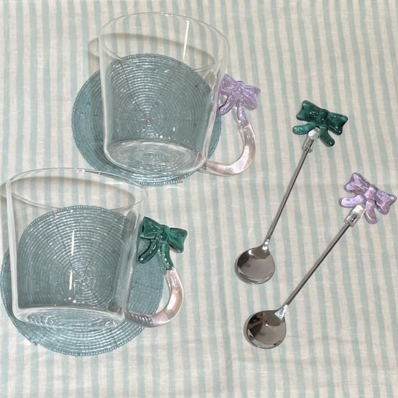 キュートでポップなリボンを持ち手にデザインしたグラス。