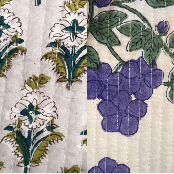 職人の手でひとつひとつ丁寧に施されたブロックプリントに、立体感のあるキルトステッチが心地よいキルトマットです。