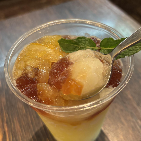 フローズン部分には、店舗仕込みのはちみつレモンのシロップとしらぬい果汁をベースに、柑橘の味わいを余すことなく閉じ込めました。ひと口目からしっかりと爽やかな柑橘の風味を感じていただけます。