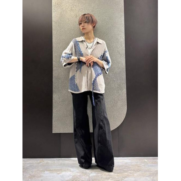 複数の編地を組み合わせたパッチワークのような構成に、クラフト感溢れる配色ステッチを施すことで、HAREらしい独創的なリズムと表情を生み出しています!