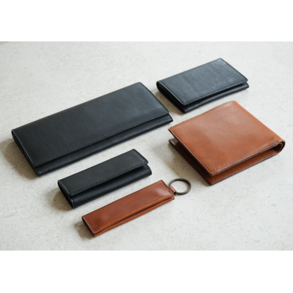 gentenの「スマートウォレット2」は、ミネルヴァリスシオの品と薄さを軸に、長財布・二つ折り・名刺入れ・キーケース・キーホルダー小銭入れの5型を用意しました。