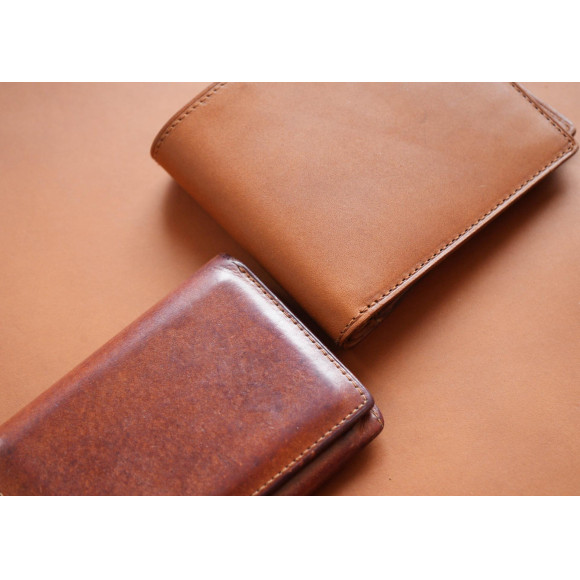 スマートウォレット2に使用されているミネルヴァリスシオは、繊維密度の高さが生むハリとなめらかな質感、そして革の内側までたっぷり含ませたオイルが特長です。