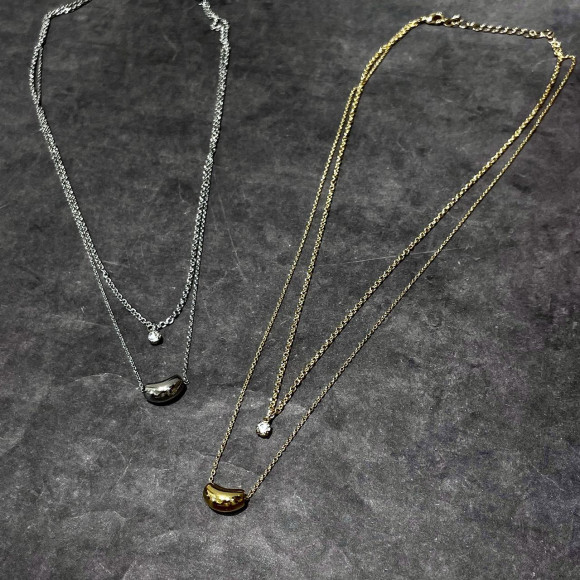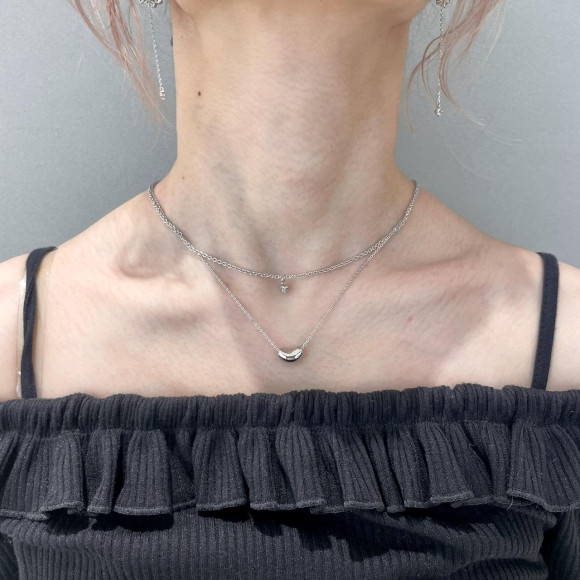 ワンポイントのメタルモチーフとビジューが可愛い二連のネックレス。