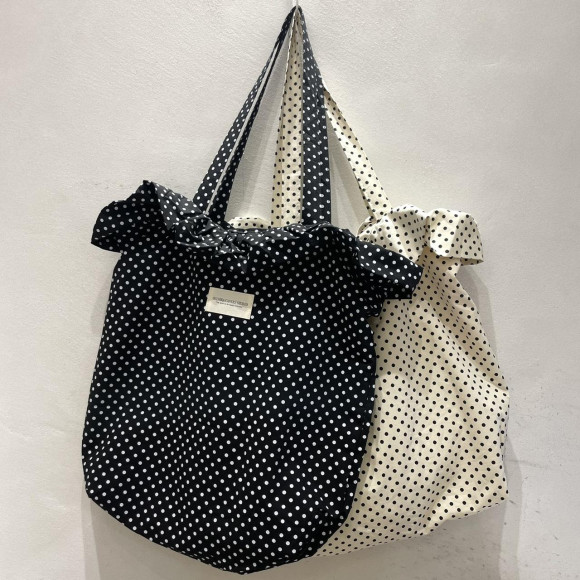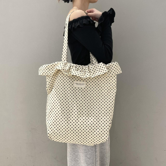 ボリュームのあるフリルが目を惹くトートバッグ。