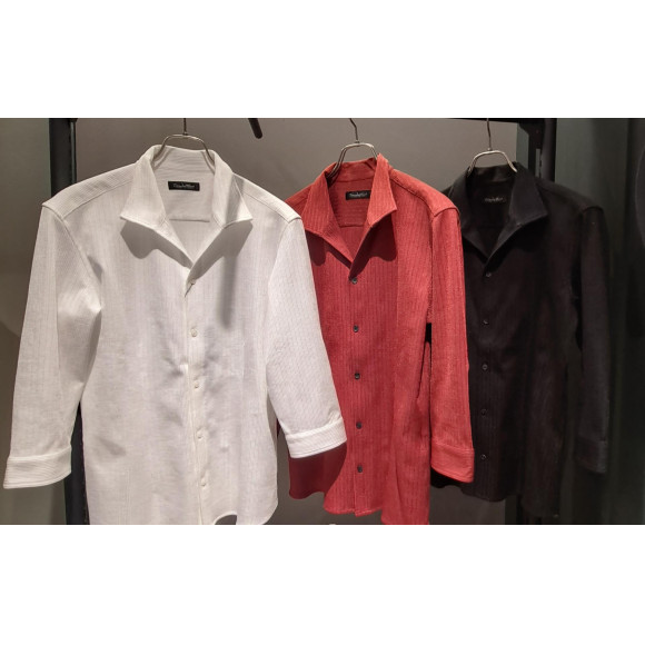 僕が着てるコチラはほのかに艶ありな大人カジュアルシャツ。