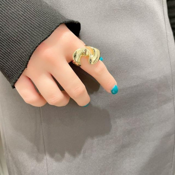 細身のリングと合わせるのは勿論、ウェーブデザインで揃えても◎