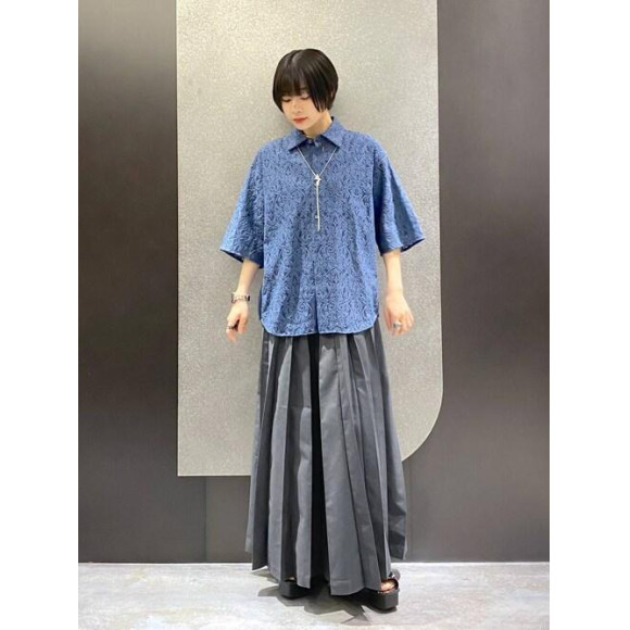レースシャツは上品な印象が◎ あまり透け過ぎないレースのデザインは、メンズレディース問わずに着用していただけます。 大人っぽく羽織りたい方におすすめ! YOSEワイドパンツでAラインシルエットを作るとバランスが取れます。