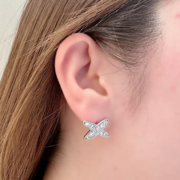 【金属アレルギー対応】クロスデザイン ビジュー ピアス/silverポスト