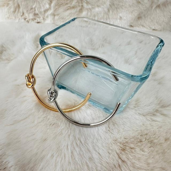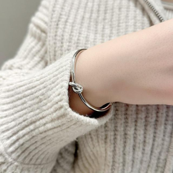 結び目モチーフがシンプルすぎずコーデのポイントになるバングル。