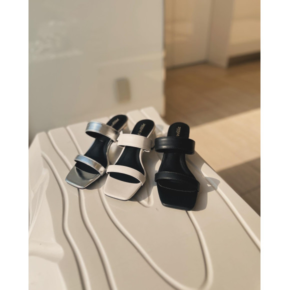 Wストラップ太ヒールミュール