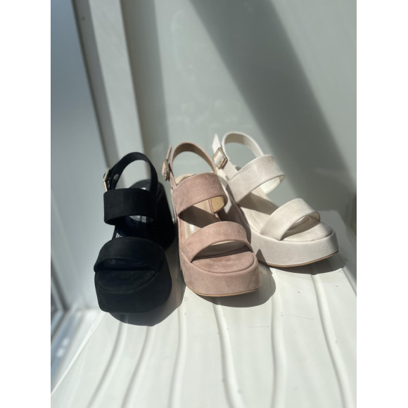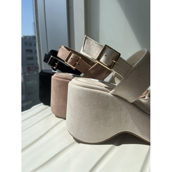 Wストラップ厚底ウェッジソールサンダル