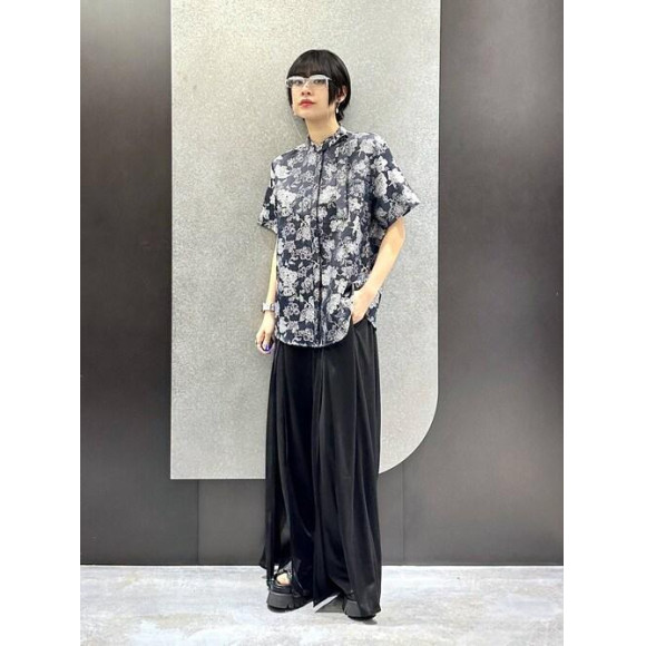 ボウタイデザインがワンポイントの 上品でモードなジャガードシャツ トレンドのボウタイデザインがワンポイント スタンドカラー仕様で、スッキリとした上品な印象に ボタンが隠れる比翼ボタンのデザインのため、スッキリとした印象に オーバー過ぎないかっちり感のあるシルエット メンズのパンツを合わせてIラインを強調すると着痩せして見えるのでオススメ!